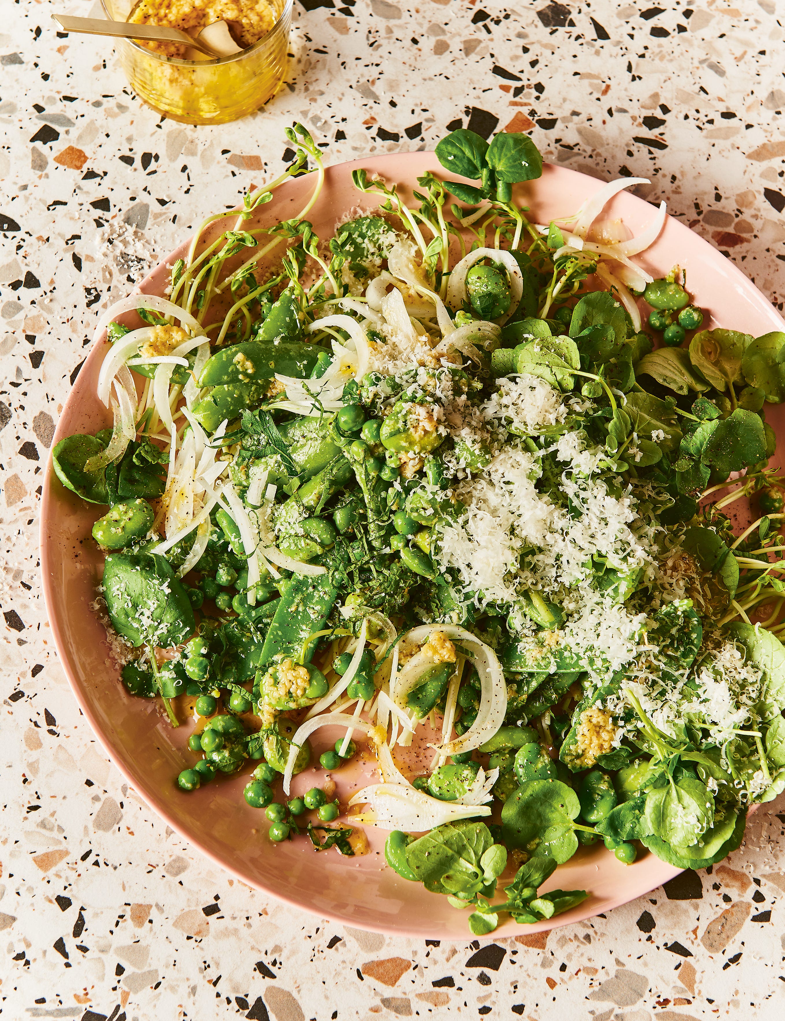 Easy peasy spring salad with Parmesan vinaigrette from Salad for Days by Alice Zaslavsky